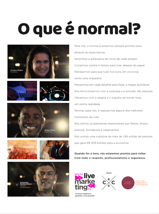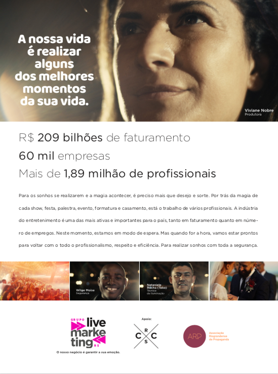 As empresas de live marketing representam uma fatia econômica importantíssima para o Rio Grande do Sul. Afinal, foi o primeiro segmento a parar e será um dos últimos a voltar, em função da pandemia pelo Coronavírus.