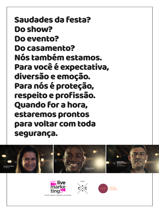 O mote da campanha tratou de mostrar um clima nostálgico e de esperança. Baseado em grandes lembranças de profissionais reais de eventos, o filme, o spot e os anúncios buscaram as excelentes histórias que foram colocadas de pé nos últimos anos. A mensagem é sempre a mesma: quando voltarmos, podem ter certeza que estaremos seguros para produzir espetáculos ainda melhores.