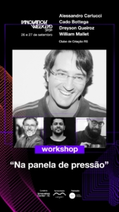 Uma atração extra do Clube de Criação é uma divertida e estimulante palestra do Cado Bottega, sobre processos criativos. Para adquirir seus ingressos para o Innovation Weekend, basta acessar ao site do evento, clicando aqui.